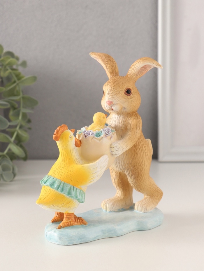 Сувенир полистоун "Зайчик и курочка с цыплёнком в скорлупе" 12х6х14 см