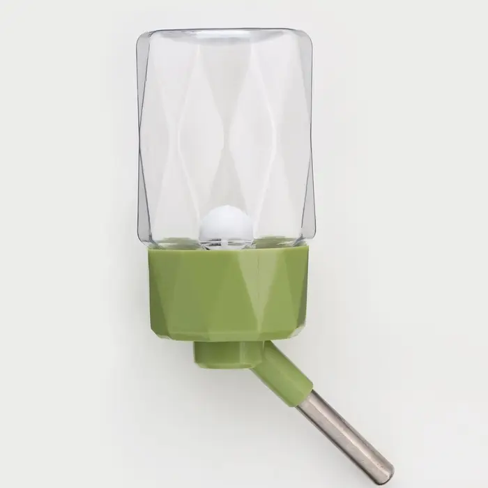 Поилка для грызунов с металлическим креплением-пружиной обеспечивает грызунам стабильный доступ к воде. Зелёный цвет делает её легко заметной в клетке — вы всегда видите уровень воды и состояние носика.