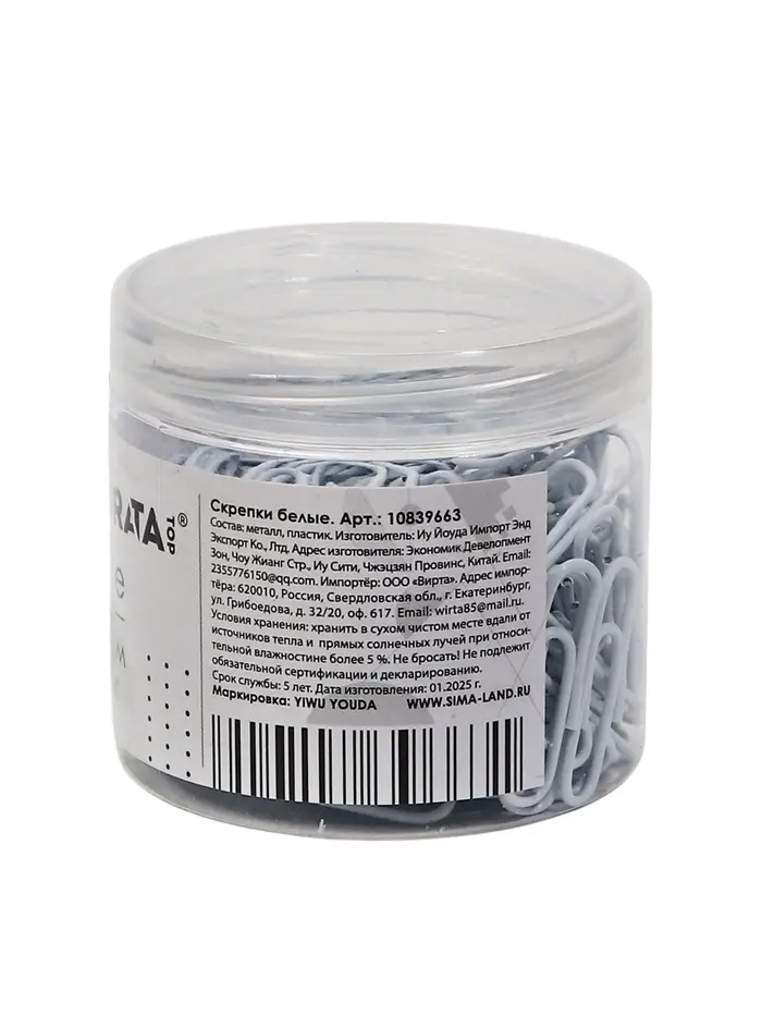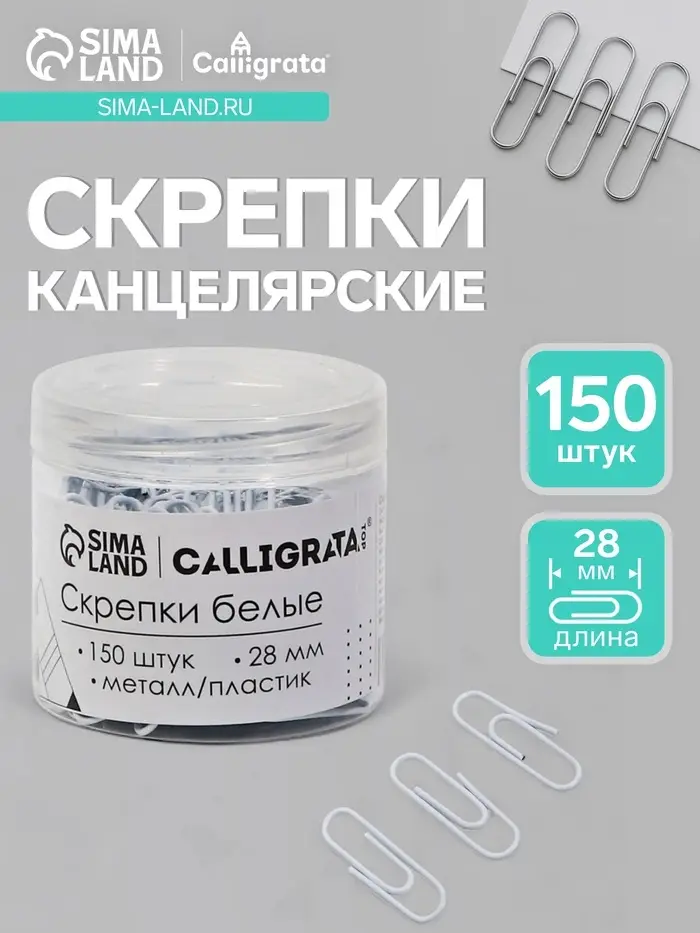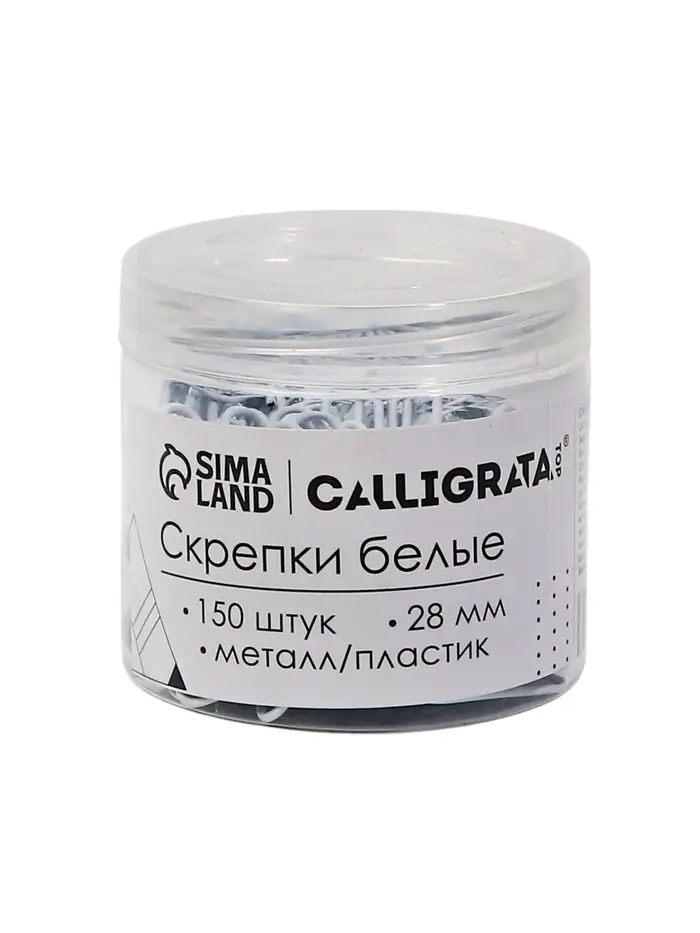Скрепки 28 мм белые в пластиковой тубе 150 штук, TOP Calligrata