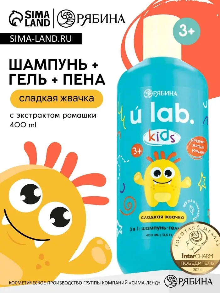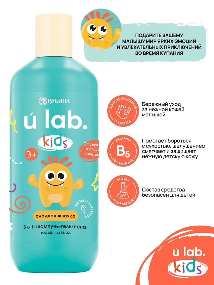 Детский шампунь-гель-пена 3в1 «Монстрики», 400 мл, аромат сладкая жвачка, ULAB
