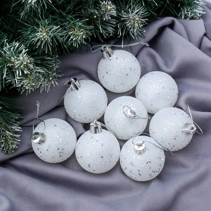 Ёлочные игрушки «Блеск», шары новогодние, набор 8 шт., d=5 см, белый