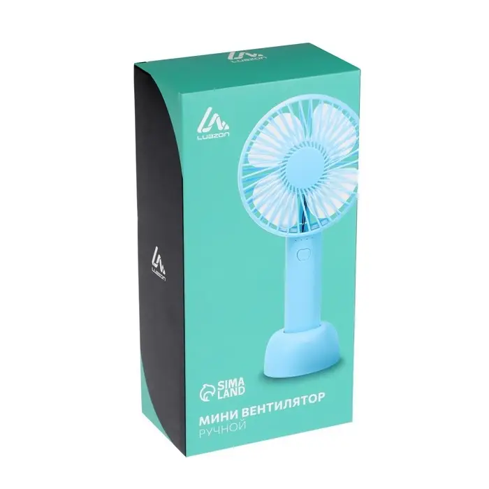 Вентилятор ручной Luazon LOF-02, портативный, 3 скорости, на аккумуляторе, 800 мАч, бирюзовый