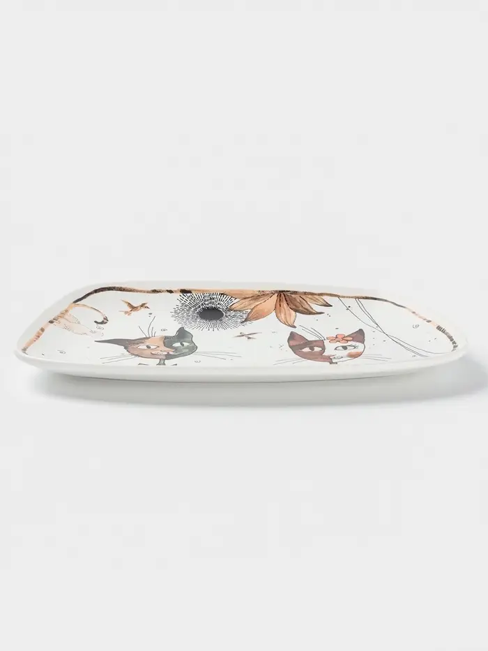 Блюдо фарфоровое сервировочное Доляна «Коты-аристократы», 30×18.5 см, белое