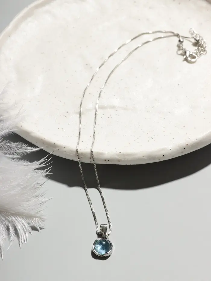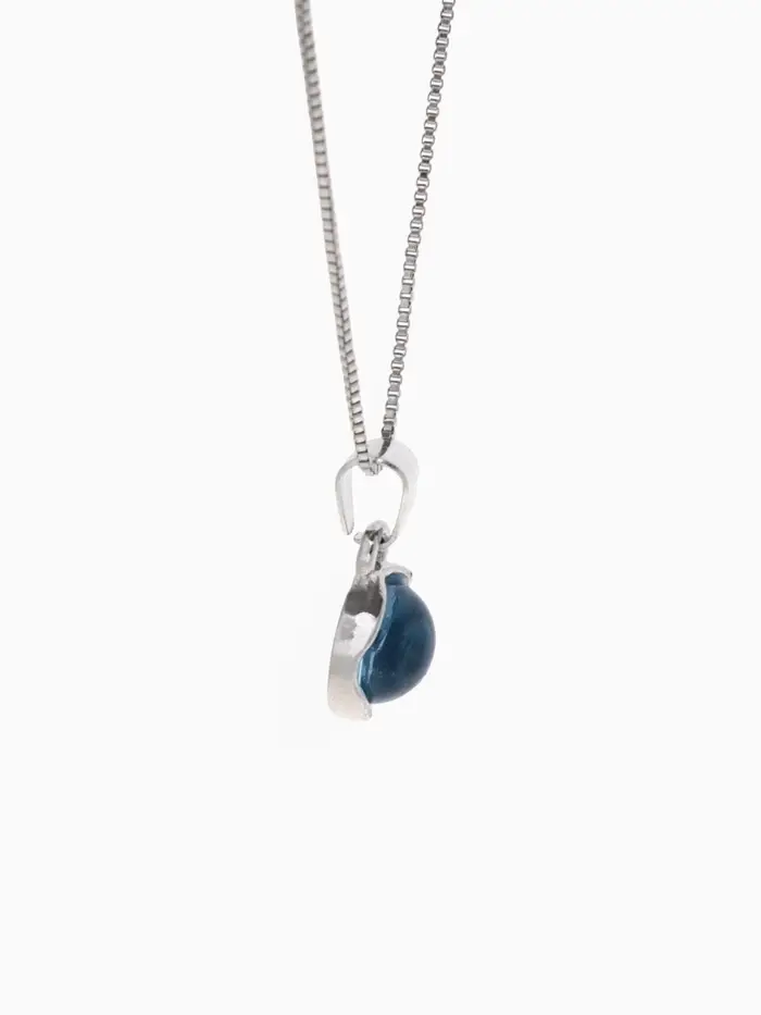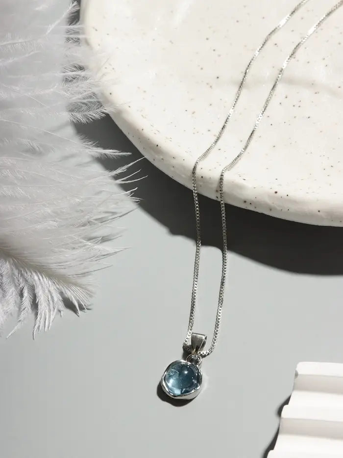 Изготовленный из высококачественного металла, кулон покрыт тонким слоем серебра, создавая иллюзию свежести и чистоты. Центральный элемент выполнен в небесно-голубом цвете, подобном водам тихого озера, подчеркивая спокойствие и равновесие.
