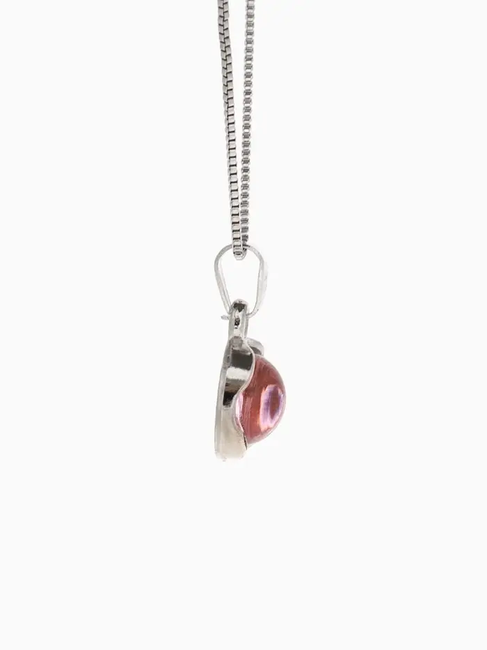 Центральный элемент кулона изготовлен из металла, покрытого тонким слоем серебра, подчеркивающего природный оттенок основной детали. Пластиковая вставка в виде прозрачного сердечка образует красивую и нежную композицию, усиливая естественную привлекательность изделия.