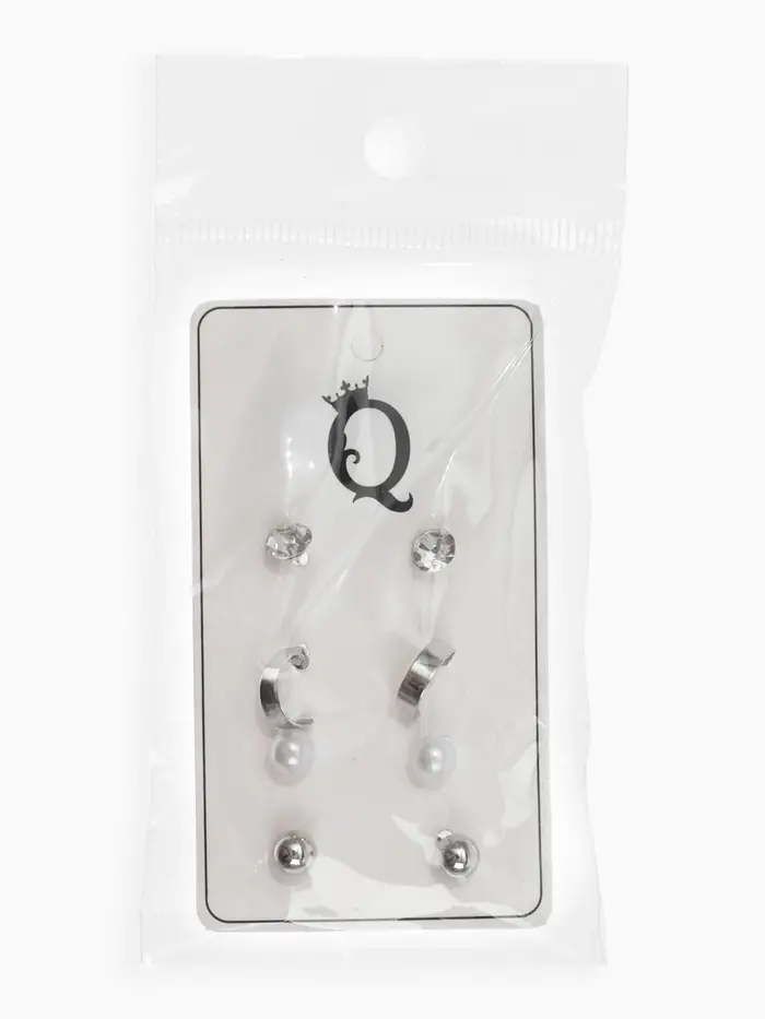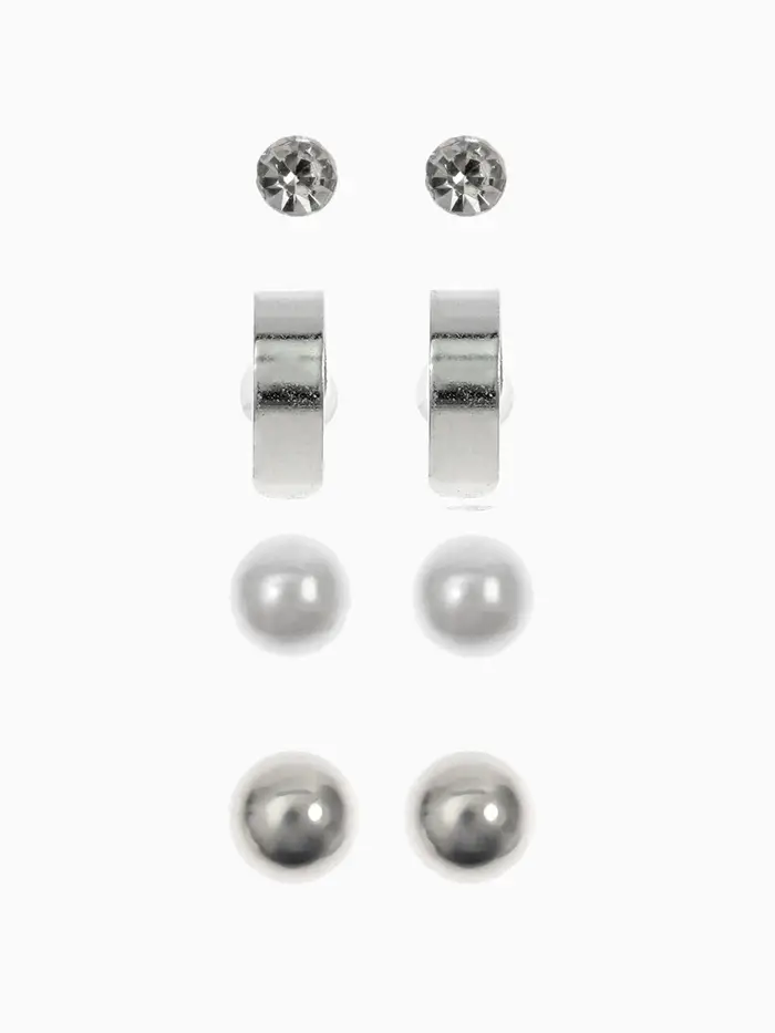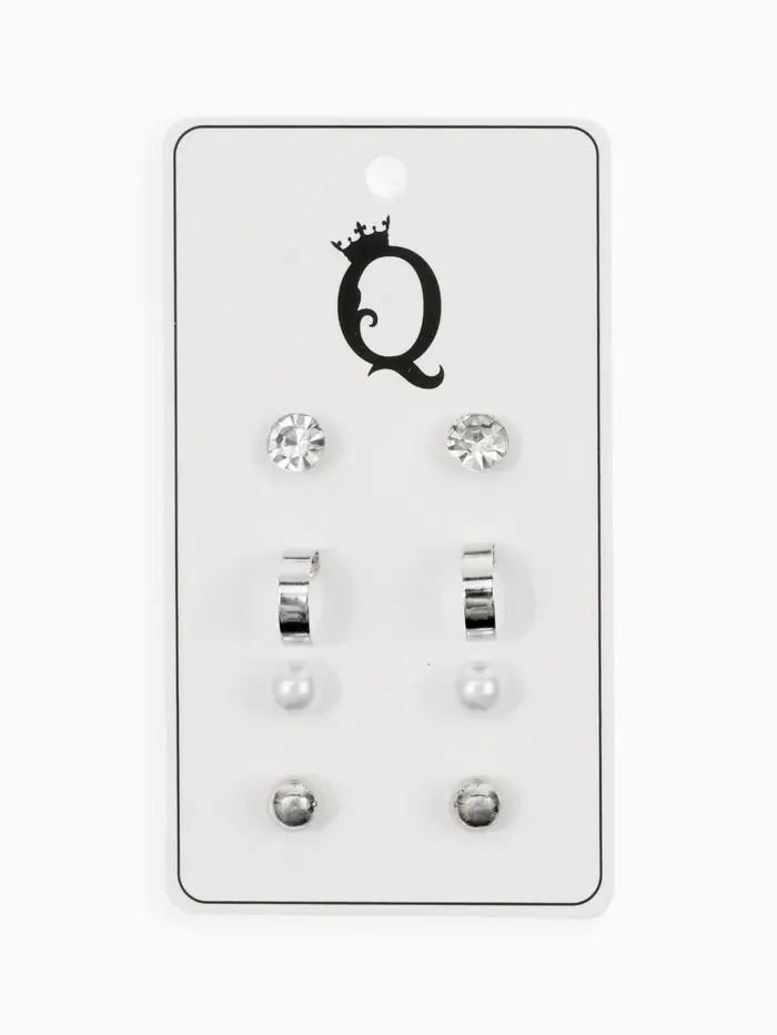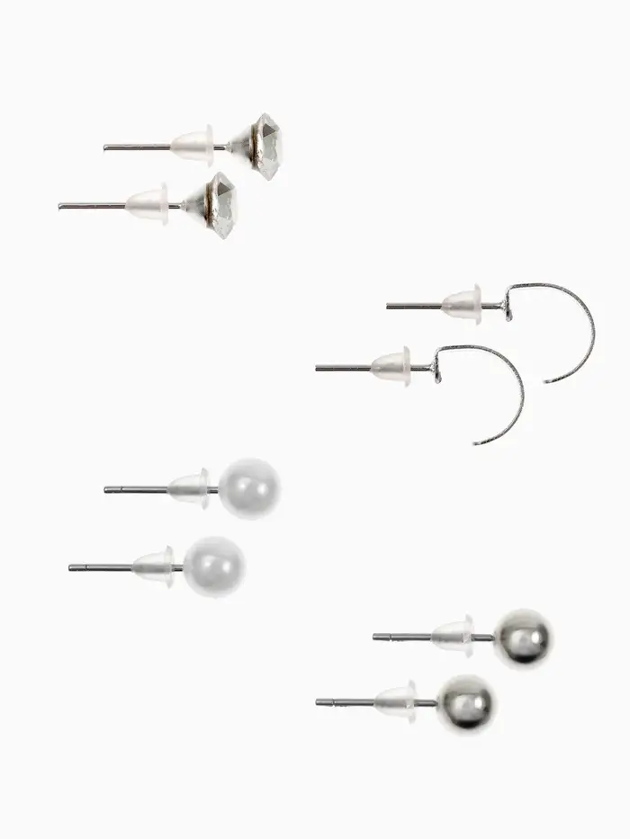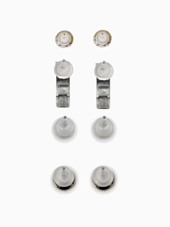 Набор из четырёх пар изящных пусет с кольцевыми элементами и белыми акцентами в серебристом исполнении — идеальное дополнение к современному образу. Миниатюрные серьги длиной всего 1 см гармонично сочетают в себе лаконичность и лёгкую игривость, подчёркивая естественную красоту и утончённый вкус.