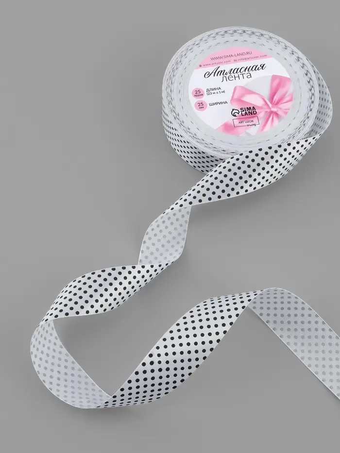 Эта белая атласная лента с нарядным горошком — идеальный штрих для ваших творческих проектов. Её классический дизайн и мягкий блеск легко дополнят праздничный декор, подарки и аксессуары ручной работы, даря им ощущение лёгкости и радости.