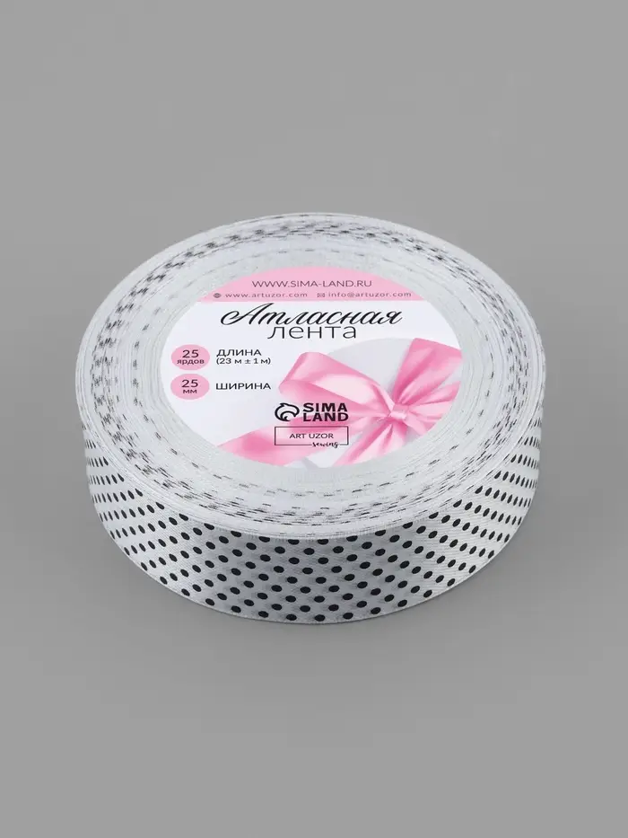 Лента атласная «Горошек», 25 мм, 23±1 м, белая №001