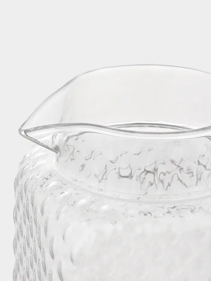 ОРИГИНАЛЬНЫЙ ДИЗАЙН: Кувшин специально разработан для воды, морсов, соков, молока, коктейлей или любых других ваших любимых напитков. Фактурное стекло эффектно дополняет продуманный силуэт.