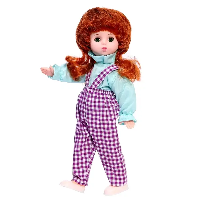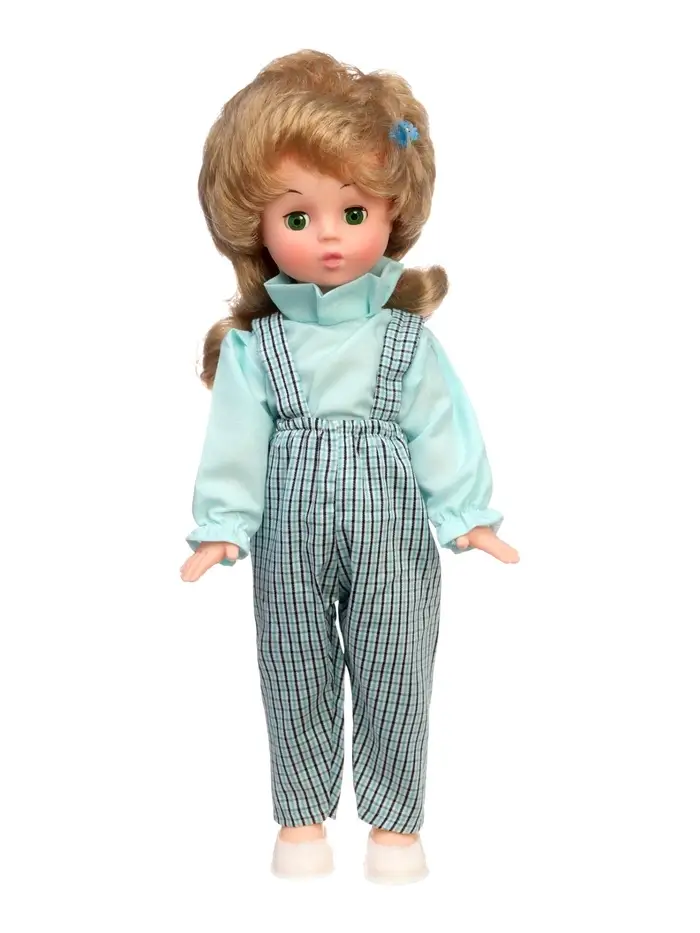 Кукла «Вика» — игрушка ростом 40 см, которая станет любимицей ребёнка. У неё прошитые волосы, которые можно причёсывать, и глазки, закрывающиеся во время сна. Куклу удобно держать, одевать и укладывать, а съёмная одежда делает игру разнообразнее.