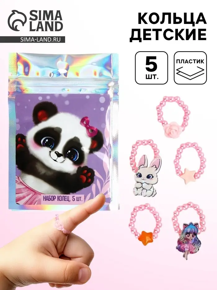 Кольца детские с бусинами «Панда», 1.5 см