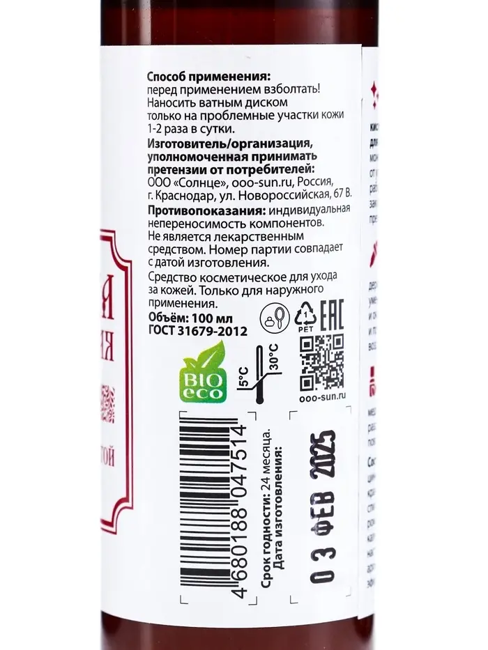 Перед применением взболтать! Наносить ватным диском только на проблемные участки кожи 1-2 раза в сутки.