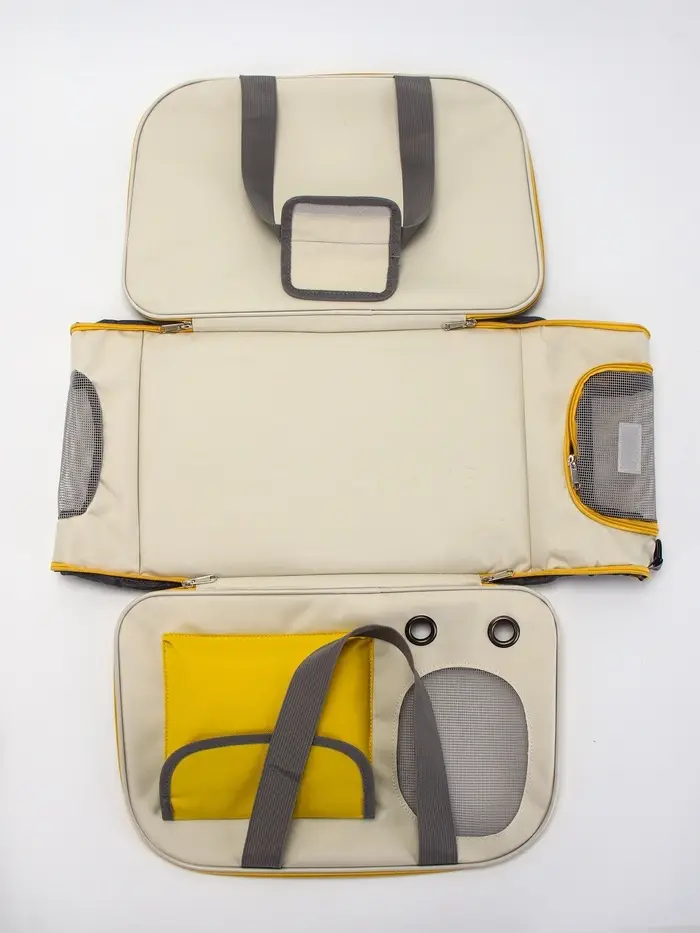 Сумка-переноска с органайзером и окном — это удобное и стильное решение для перевозки вашего питомца. Бело-жёлтая расцветка, компактные размеры и продуманная конструкция делают её идеальным выбором для поездок и прогулок.