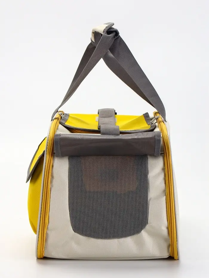 Сумка-переноска с органайзером и окном, 45×26×29 см, серо-жёлтая