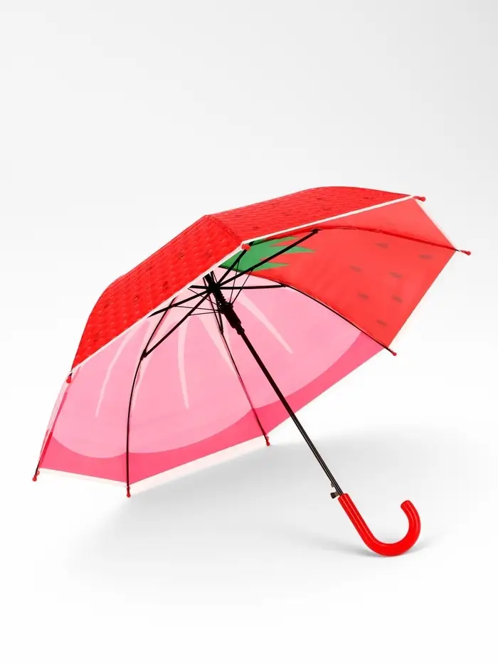 Представляем яркий и функциональный аксессуар, который превратит любую прогулку под дождём в сладкое приключение — детский зонт-трость с изображением клубники. Этот очаровательный зонт станет не просто защитой от непогоды, но и источником радости для вашей маленькой модницы, добавляя игривости даже в самые серые деньки.