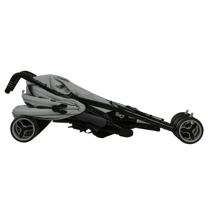 Колеса складной коляски двойные, из прочного мягкого материала EVA, с пружинной амортизацией. Они не боятся проколов и обеспечивают мягкий ход по неровностям. Передние колеса поворотные, с возможностью фиксации, обеспечивают маневренность и простоту управления. Независимые тормоза на задних колесах.