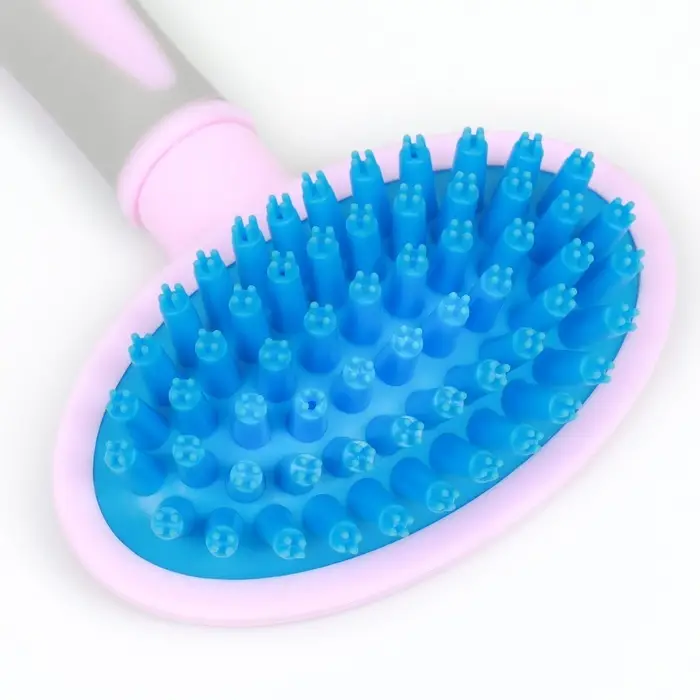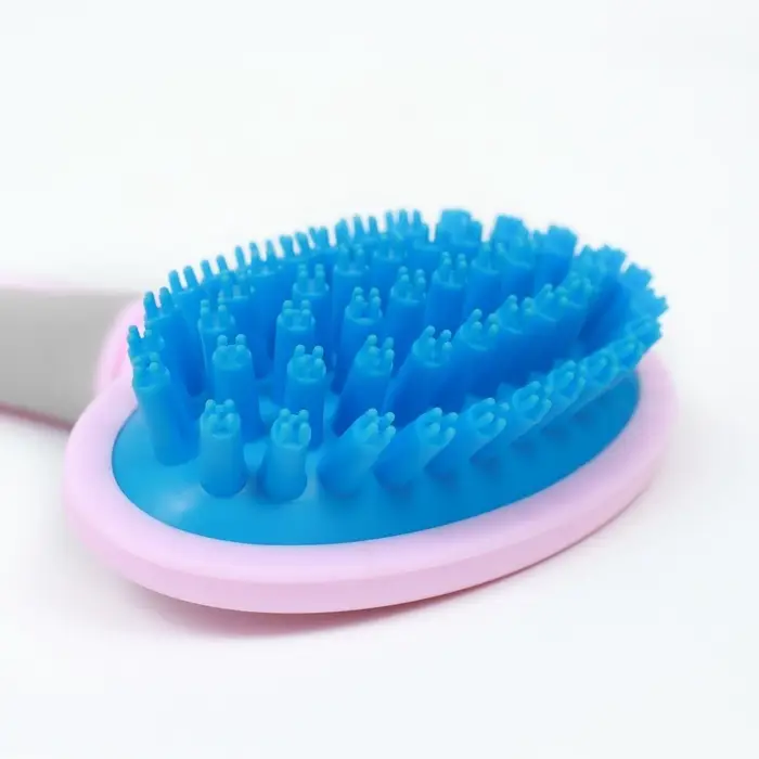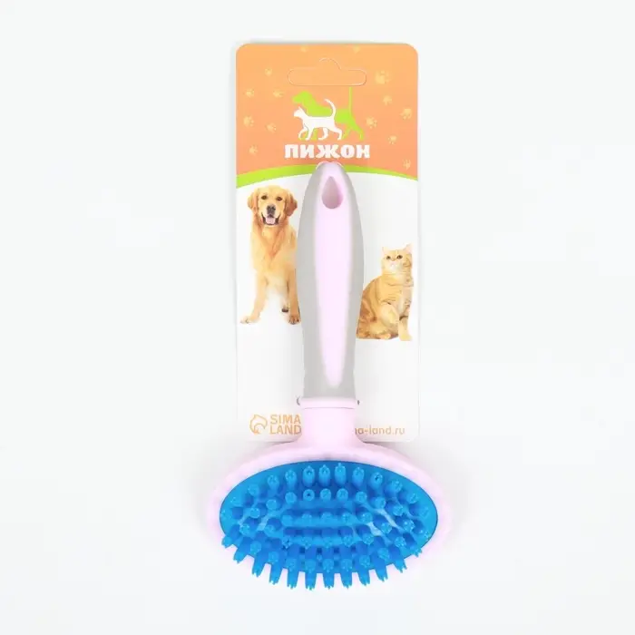 Щётка-массажёр для животных, 9.5×16.5 см, с силиконовыми зубьями, средняя, пластик, розовая, голубая