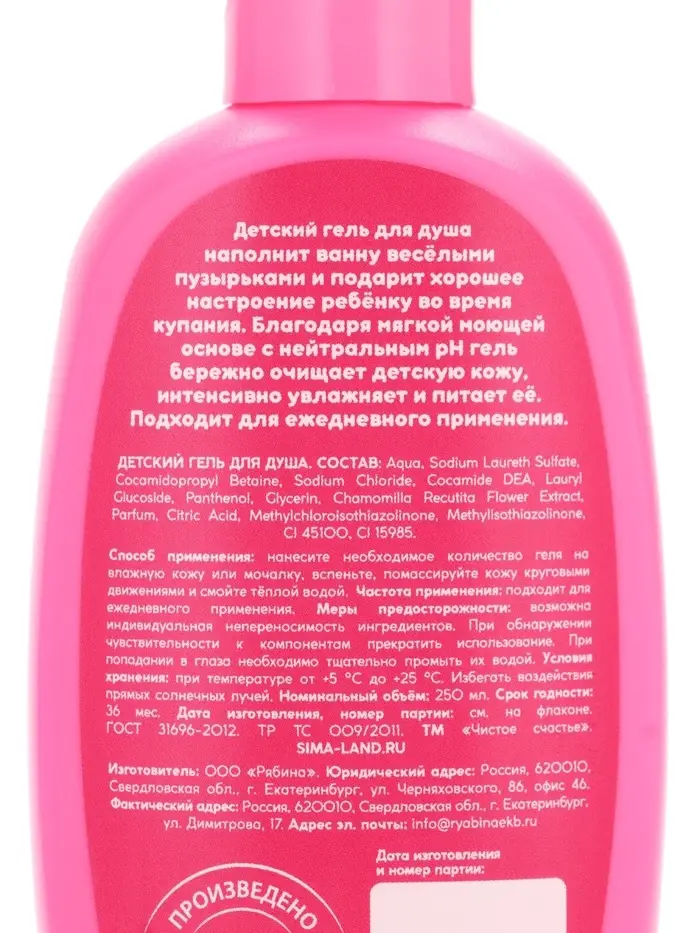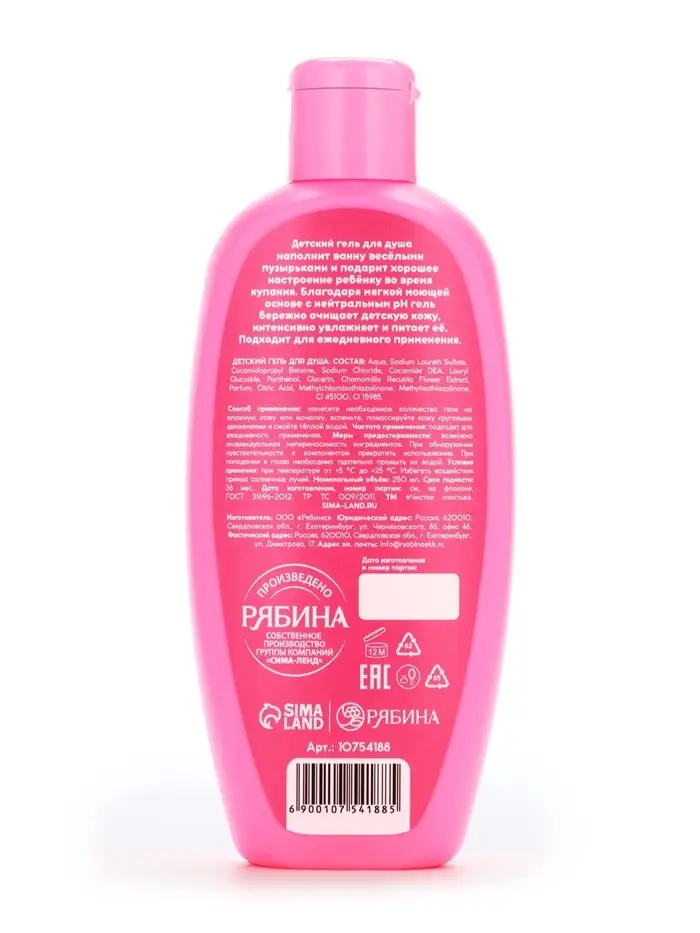 Aqua, Sodium Laureth Sulfate, Cocamidopropyl Betaine, Sodium Chloride, Сocamide DEA, Lauryl Glucoside, Panthenol, Glycerin, Chamomilla Recutita Flower Extract, Parfum, Citric Acid, Methylchloroisothiazolinone, Methylisothiazolinone, Cl 45100, Cl 15985.