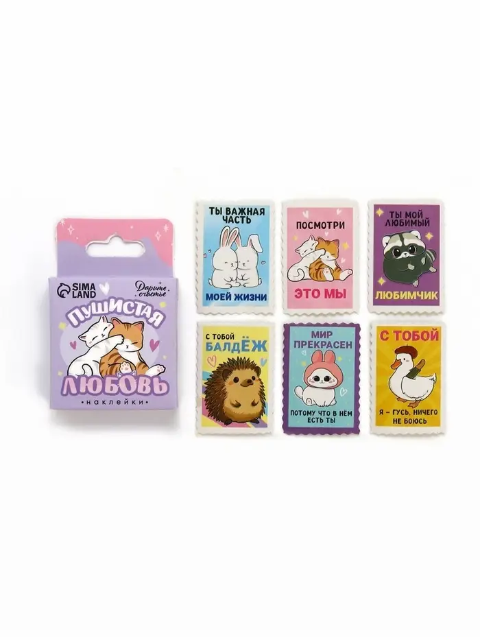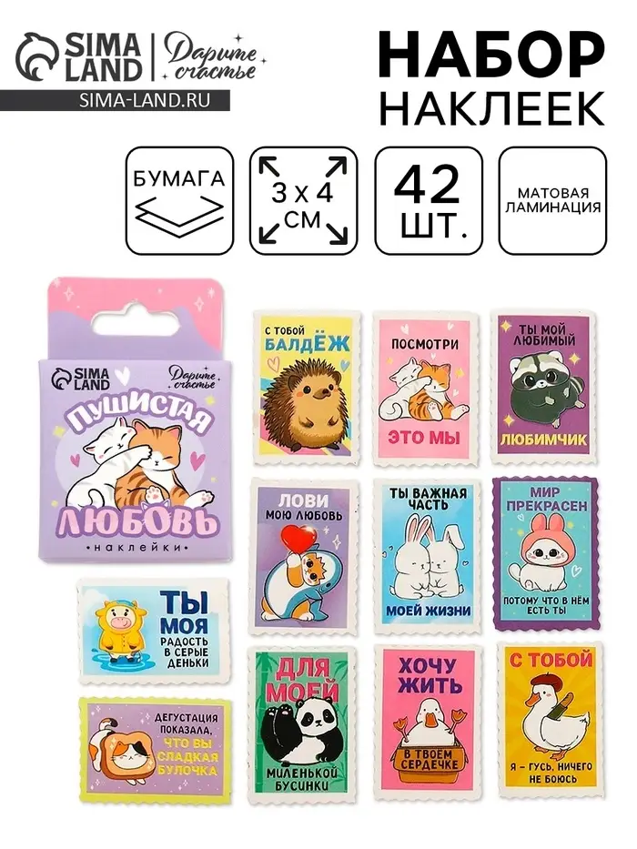 Наклейки для подарков «Пушистая любовь», 42 штуки в коробке. 3×4 см