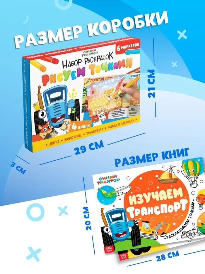 Подарочный набор раскрасок «Рисуем точками», 6 точка - маркеров, 4 шт. по 128 стр., Синий трактор