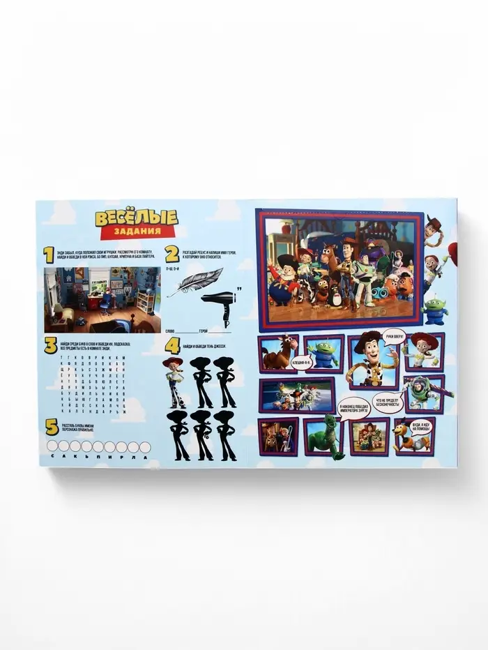 На обратной стороне упаковки есть настольная игра! Бросай кубик, двигай фишку по полю и проходи испытания вместе с персонажами!