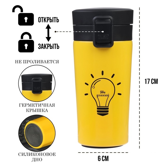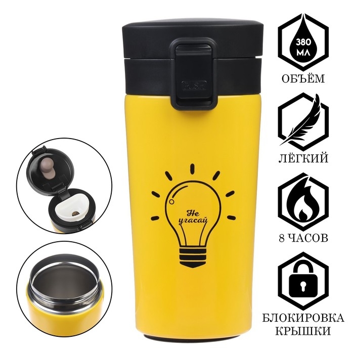 Термокружка, 380 мл, Style "Не угасай", сохраняет тепло 8 ч, с ситечком