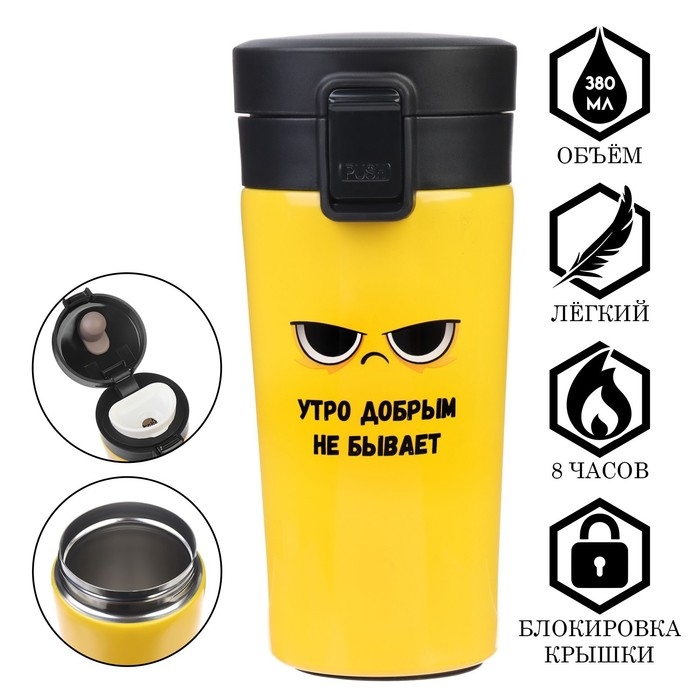 Термокружка, 380 мл, Style "Утро добрым не бывает", сохраняет тепло 8 ч, с ситечком