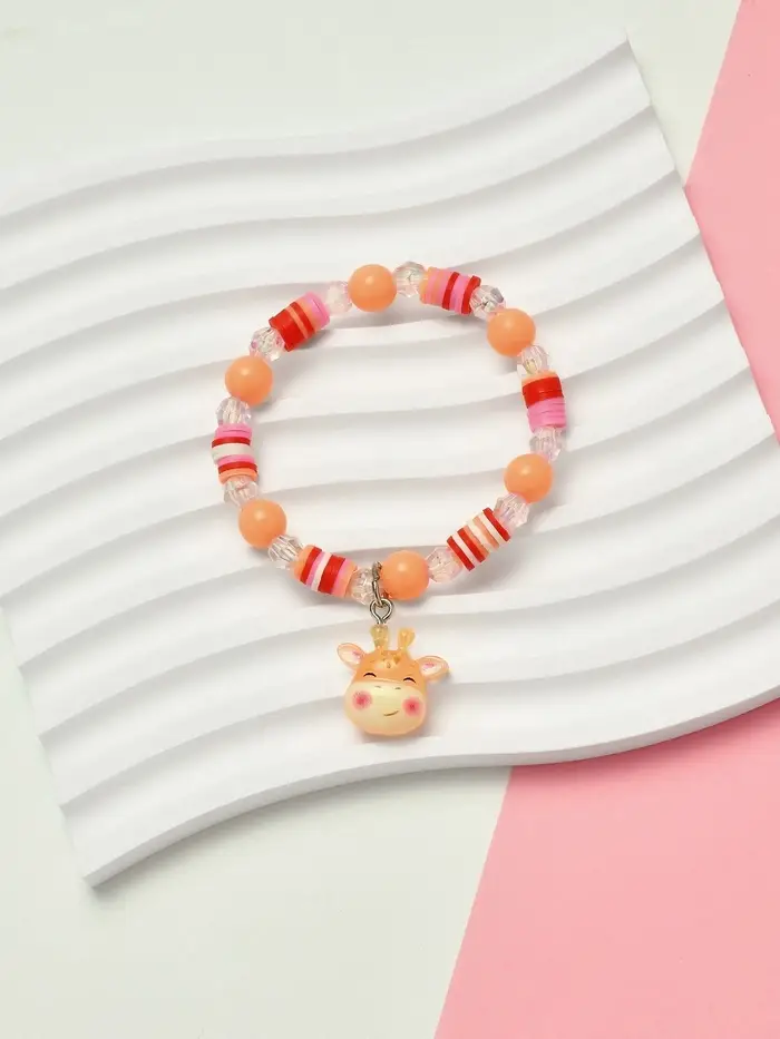 - Яркий и привлекательный дизайн: розовый цвет и игривые элементы жирафа делают браслет заметным и стильным.