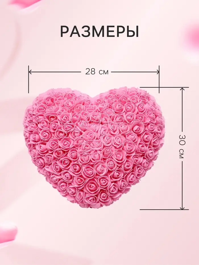 Декоративная композиция "СЕРДЦЕ" розовая — символ нежности и трепетных чувств, воплощённый в форме сердца, украшенного искусственными розами мягкого розового оттенка. Каждая роза аккуратно размещена, создавая объёмный и гармоничный букет, который наполняет пространство лёгкостью и романтикой.