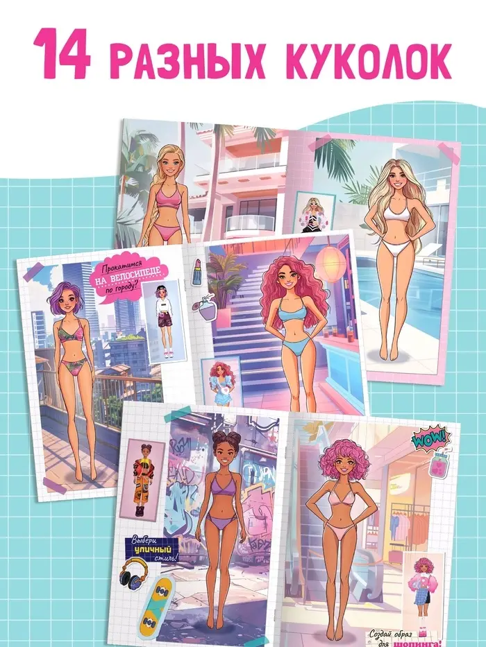 - 14 готовых образов: Юная модница сможет создавать разнообразные луки, комбинируя одежду и аксессуары. Это отличный способ развить чувство стиля и творческое мышление.