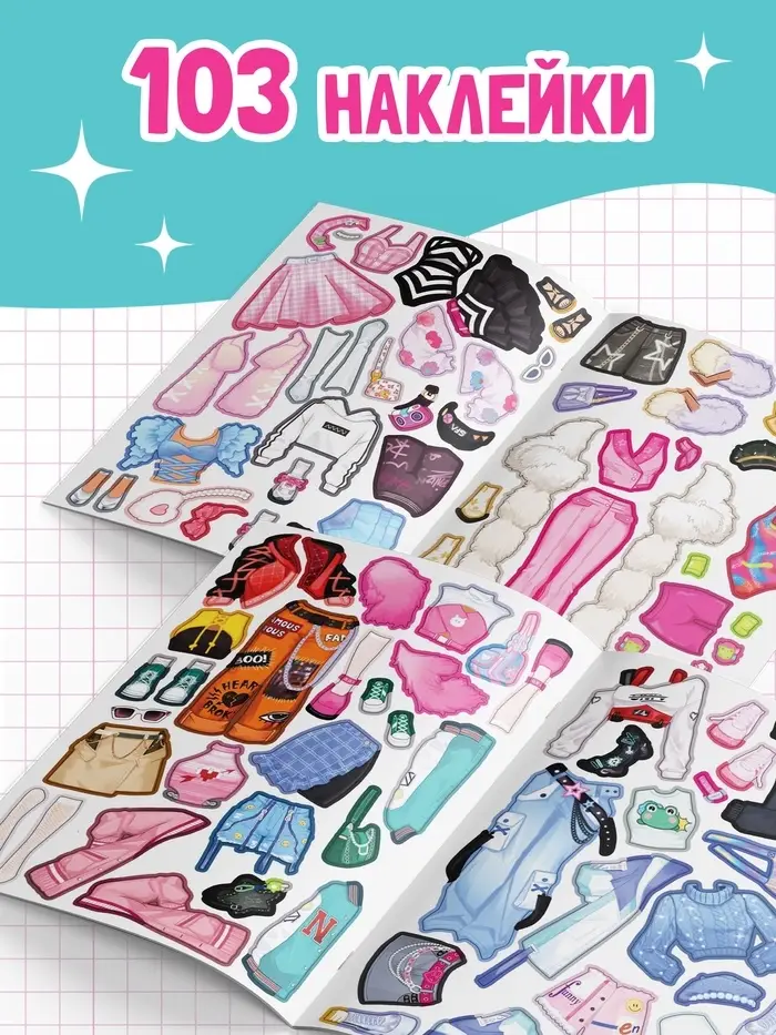 Книга с наклейками «Гардероб мечты», 14 образов, 103 стикеров