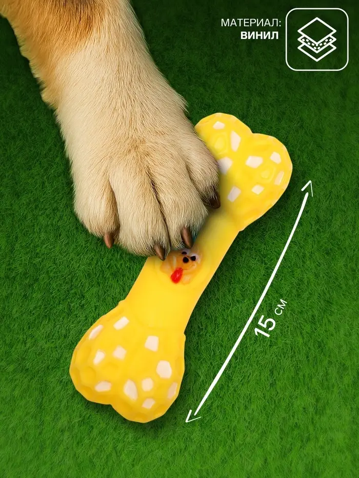 Игрушка для собак «Кость с портретом», 15 см, пищащая, жёлтая