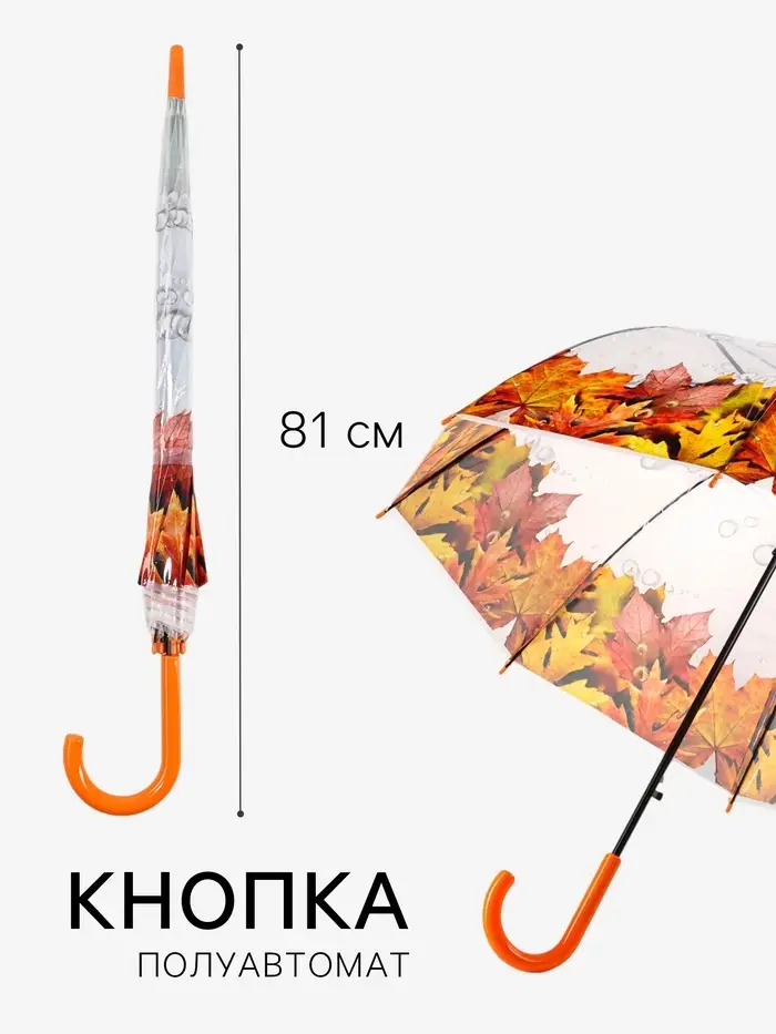 Зонт - трость полуавтоматический «Времена года», 8 спиц, R=40/60 см, d=80 см, МИКС