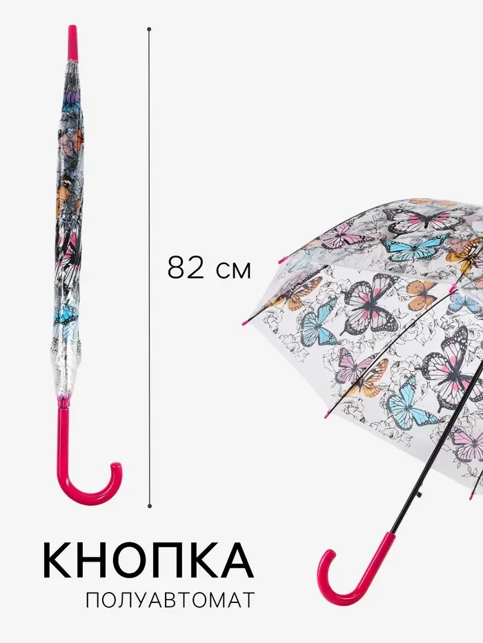 Зонт - трость полуавтоматический «Бабочки», 8 спиц, R=43/60 см, d=86 см, рисунок МИКС