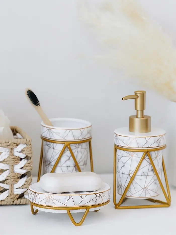 - Качественные материалы: прочная керамика устойчива к влаге и легко моется, что делает уход за аксессуарами максимально простым.