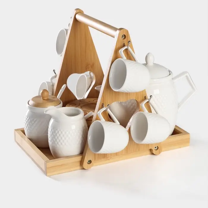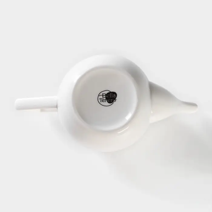 Чайный сервиз на подставке BellaTenero, 15 предметов: чайник 850 мл, 6 кружек 70 мл, сахарница с ложкой 300 мл, молочник 250 мл, 6 блюдец, фарфор, белый