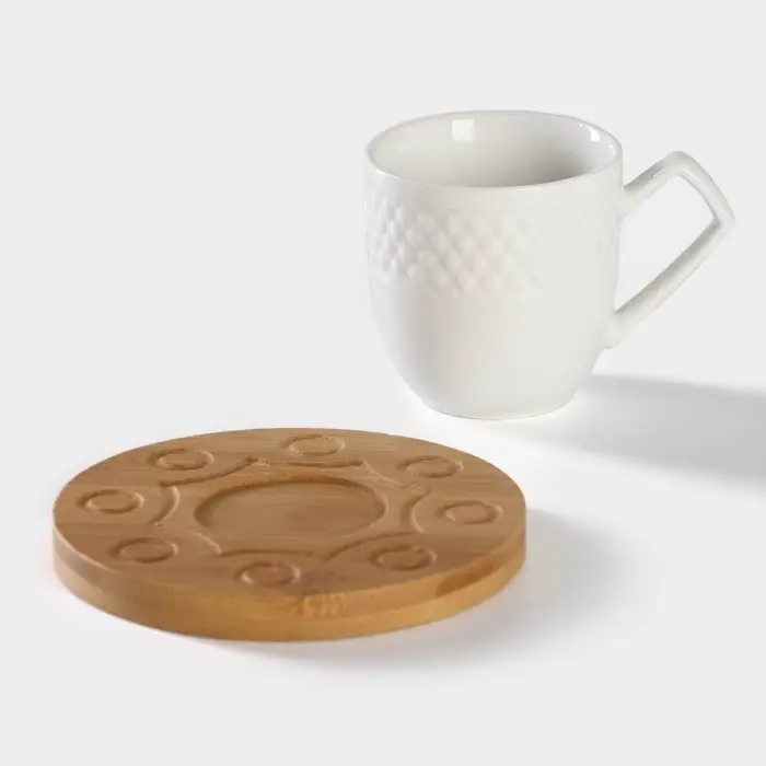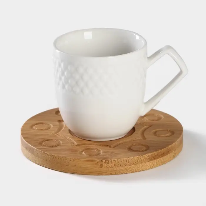 Чайная пара SL Home «Виенто», чашка 250 мл, блюдце d=15 см, керамика, бежевая