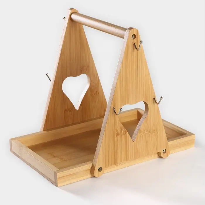 Набор дополняет устойчивая деревянная подставка с крючками.