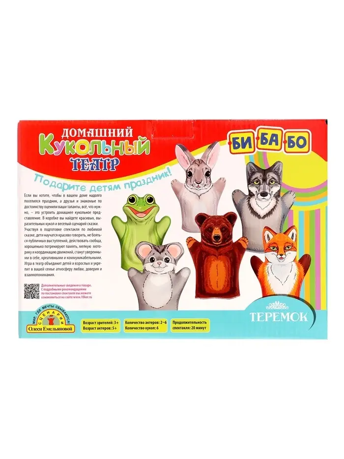 Кукольный театр «Теремок», 6 кукол-перчаток, сценарий в стихах