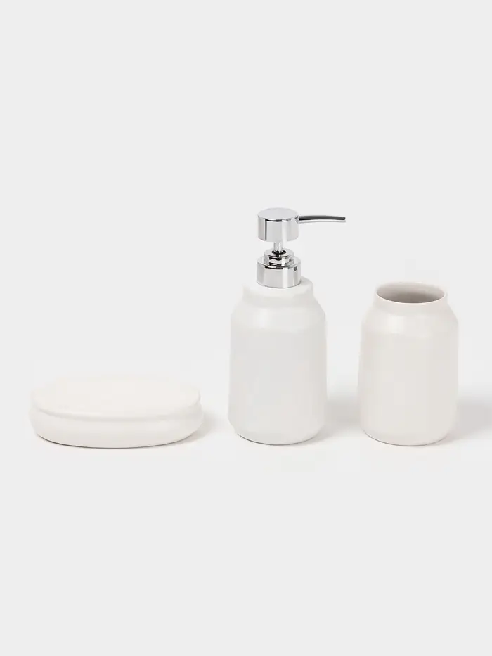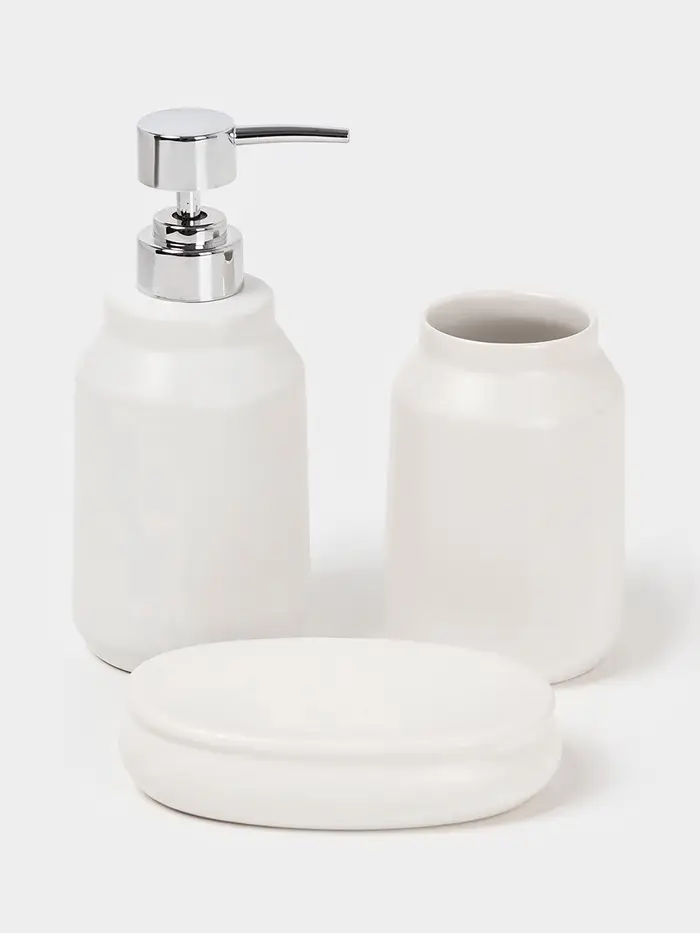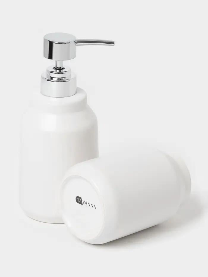 Аксессуары для ванной SAVANNA Monro, 4 предмета, мыльница, дозатор для мыла 450 мл, стакан, баночка, белые