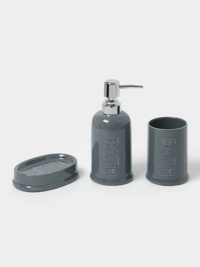 Аксессуары для ванной SAVANNA «Бэкки», 3 предмета, мыльница, дозатор для мыла 400 мл, стакан, серо-голубые