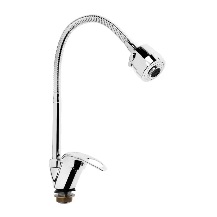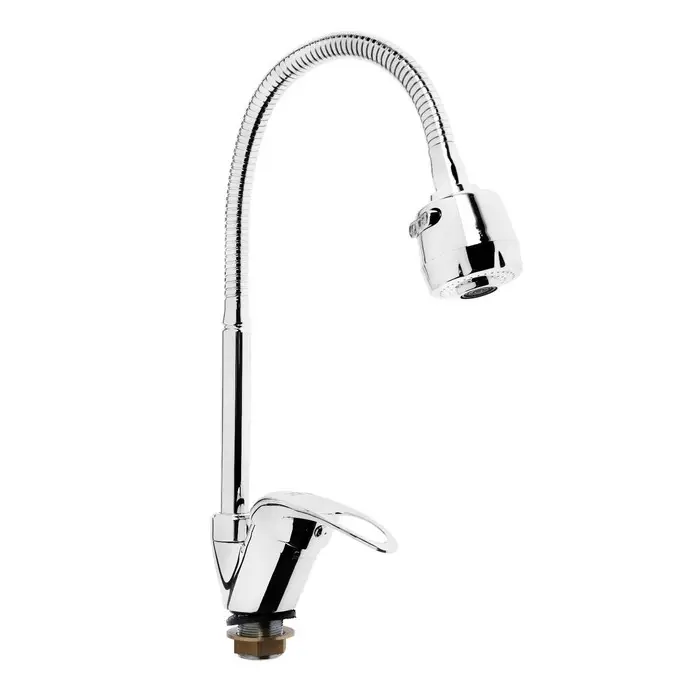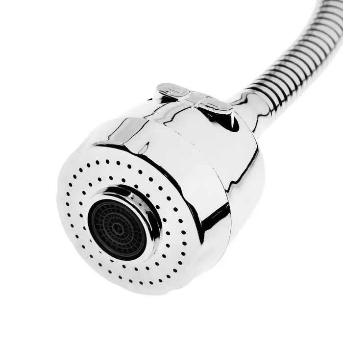 Смеситель с гибким изливом и двухрежимным аэратором — рычажная модель для кухни. Корпус из цинкового сплава с хромированным покрытием.