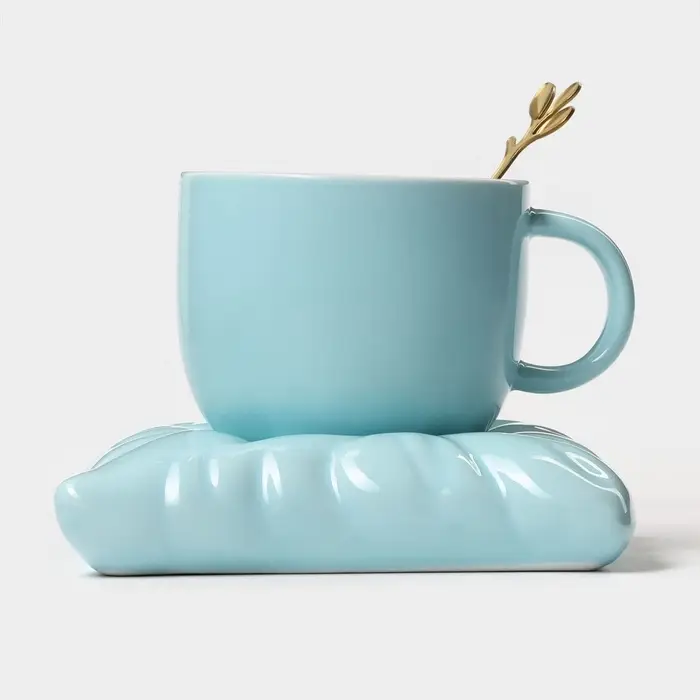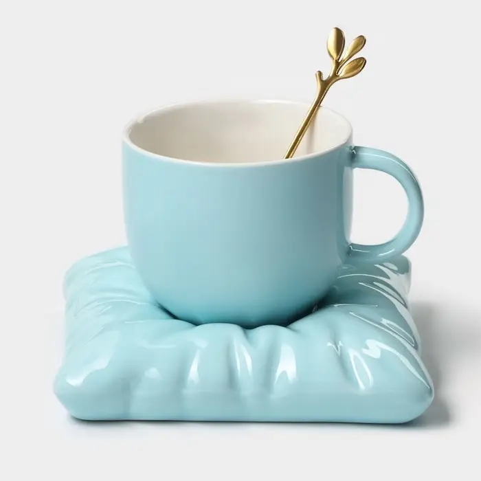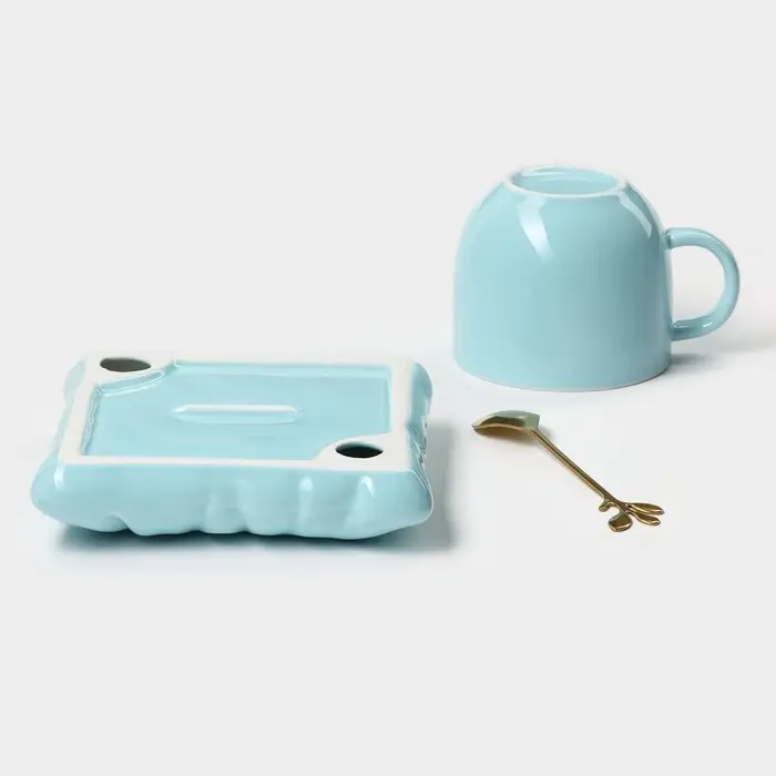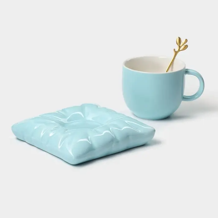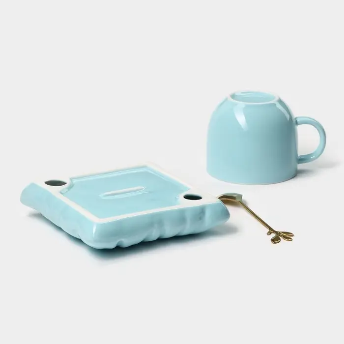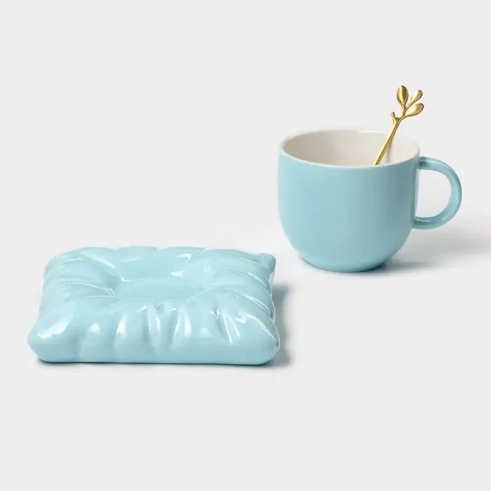 Чайная пара «Зефирка», 3 предмета: чашка 250 мл, блюдце d=13.7 см, ложка, керамика, голубая