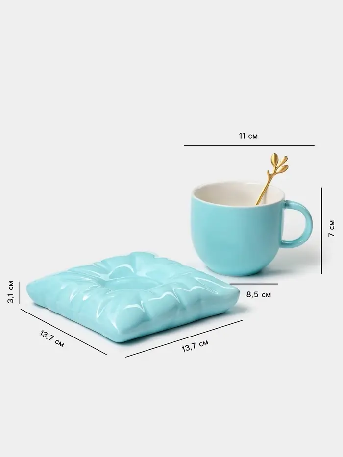 - В комплекте — чашка, блюдце и ложка: всё необходимое для одного человека, без добавок и замен.