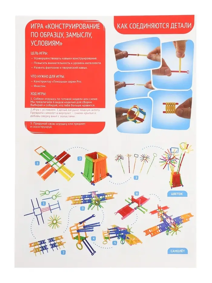 - 6 готовых моделей: в комплекте есть схема сборки разных конструкций. Ребёнок сможет собрать свою первую модель за 15-20 минут.