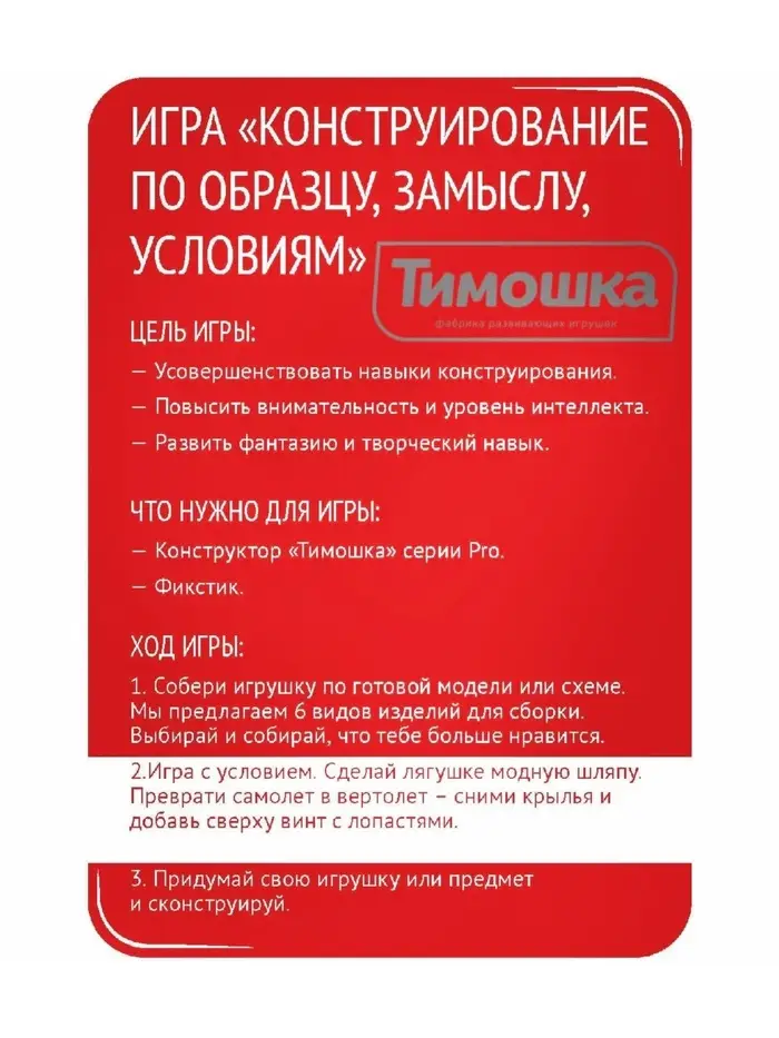 Конструктор развивает мелкую моторику, логическое мышление и воображение.