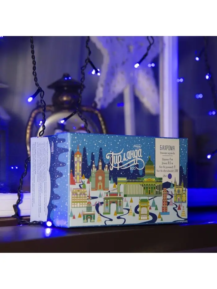 Гирлянда «Бахрома» 3×0.6 м, IP44, УМС, тёмная нить, 160 LED, свечение бело-синее, мигание, 220 В