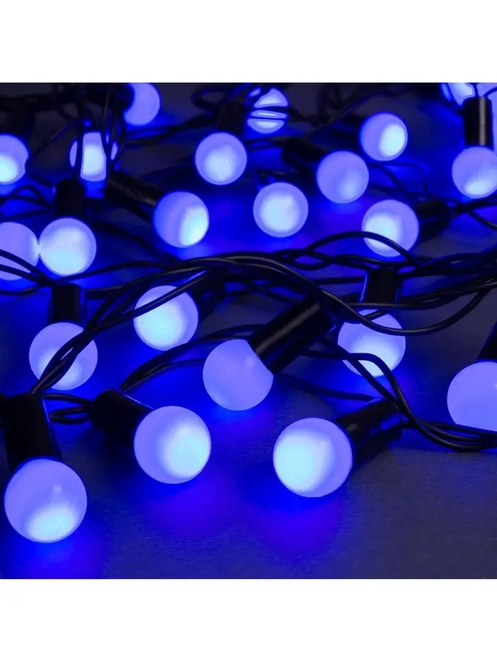 Гирлянда «Нить» 10 м с насадками «Шарики 1.5 см», IP44, тёмная нить, 100 LED, свечение синее, 8 режимов, 220 В