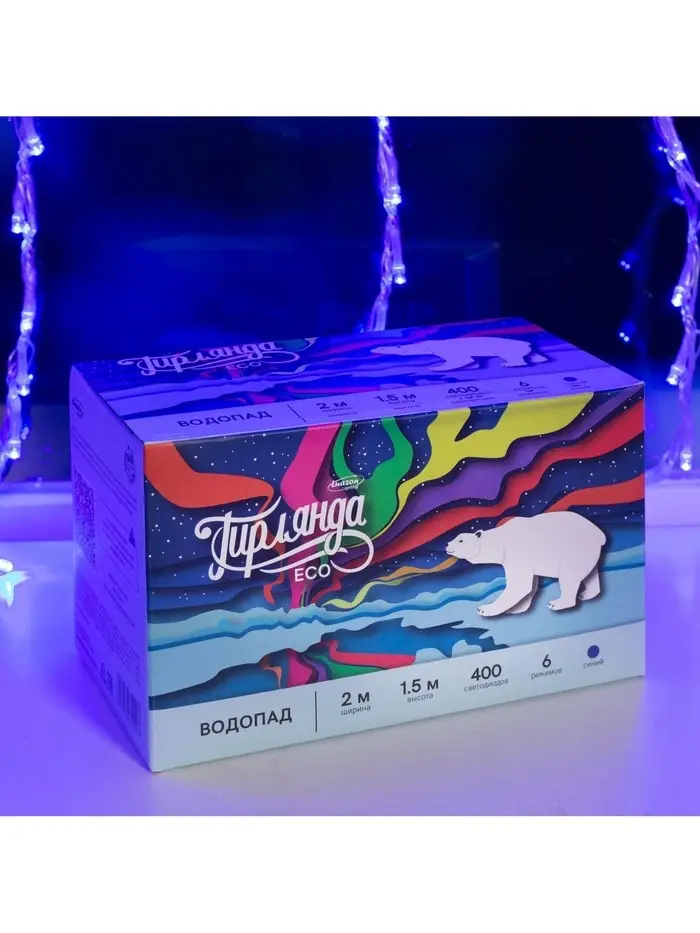 Гирлянда «Водопад» 2×1.5 м, IP20, прозрачная нить, 400 LED, свечение синее, 8 режимов, 220 В