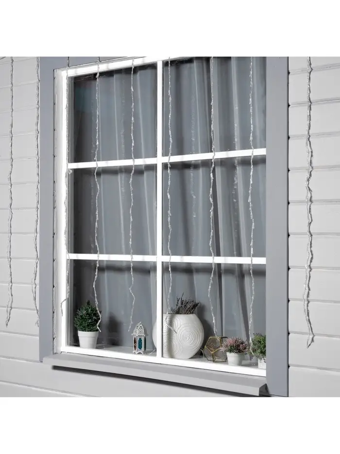 Гирлянда «Сосульки рифленые» 2.5×0.3 м, IP65, прозрачная нить, 192 LED, свечение белое с эффектом стекания, 12 В